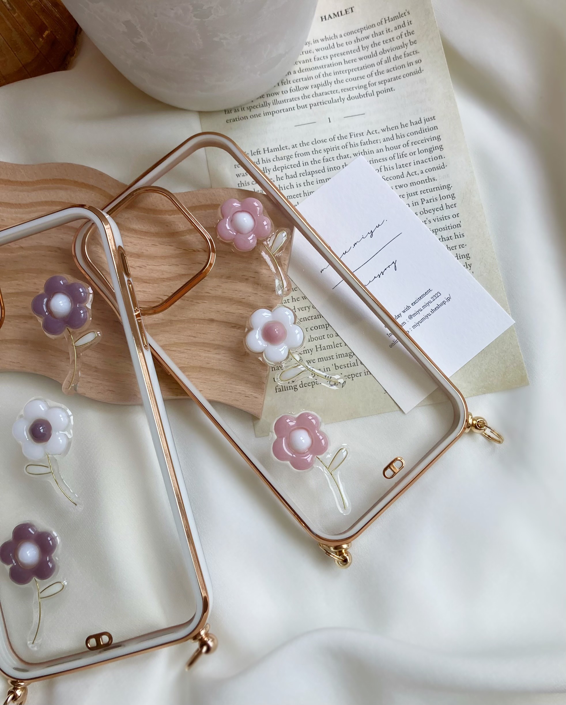 ふんわり可愛い〔ブラウン〕と〔ピンク〕のお花のデザインがショルダーケースのゴールド感で更に華やかです♡